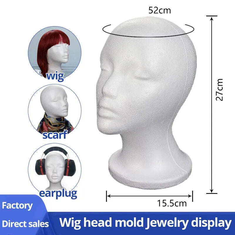 1pc Female White Styrofoam Foam Mannequin Head Model Hat Wig Display Stand Rack