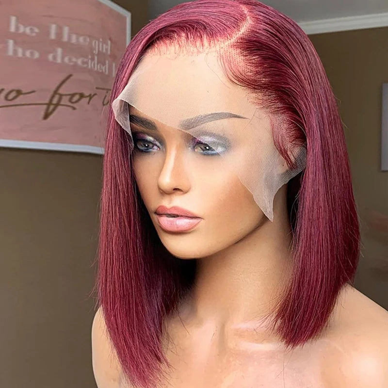 Burgundy Short Bob Wig 4x4 Closure Lace Front Human Hair