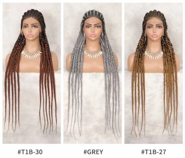 Long Synthetic 11 Braids Full Lace Wig Heat Resistant Synthetic Rough Cornrow Box Braided