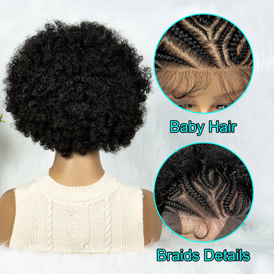 13x6 Lace Front Cornrow With Baby Hair Kinky Curly Hair Wigs
